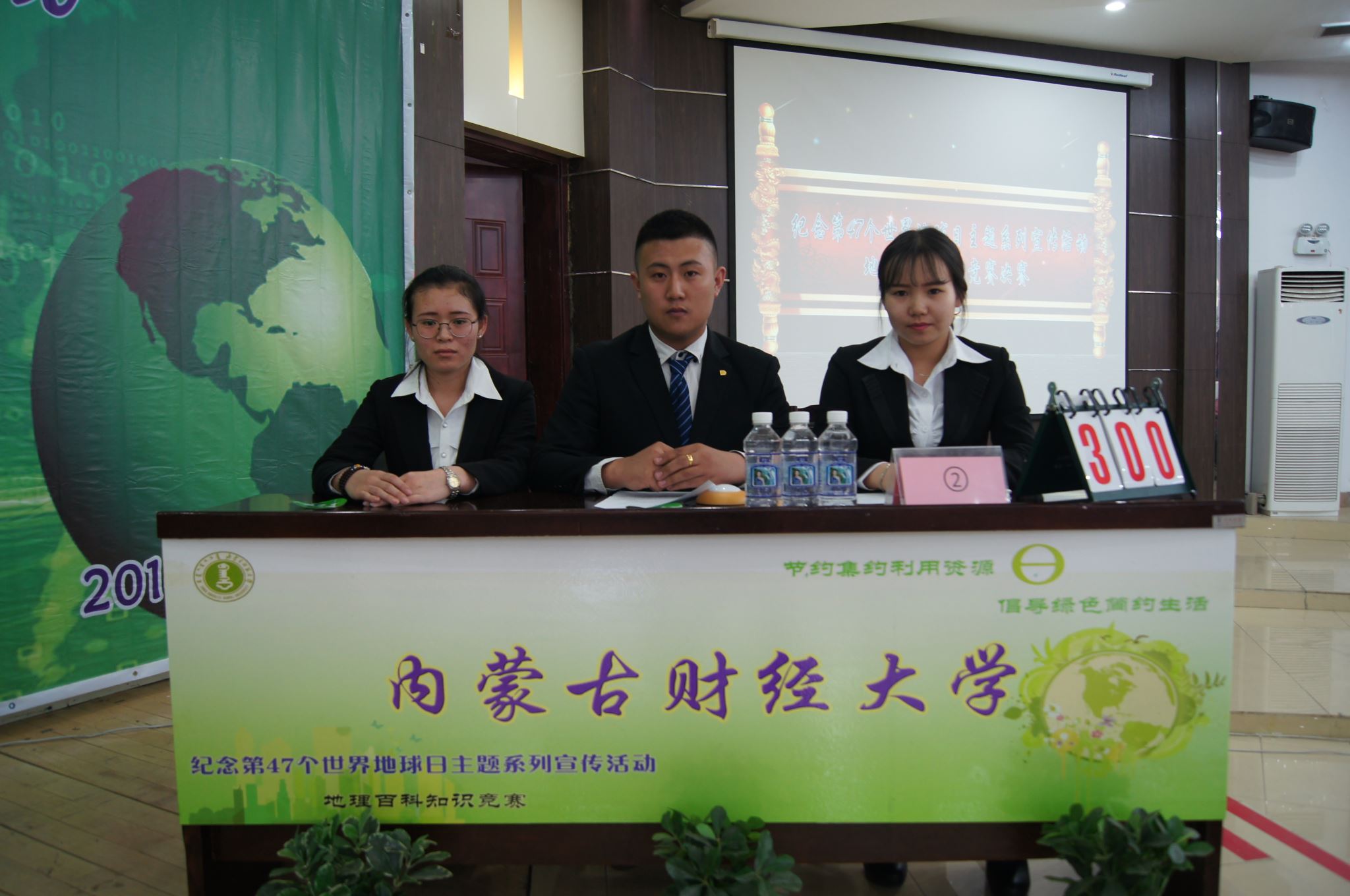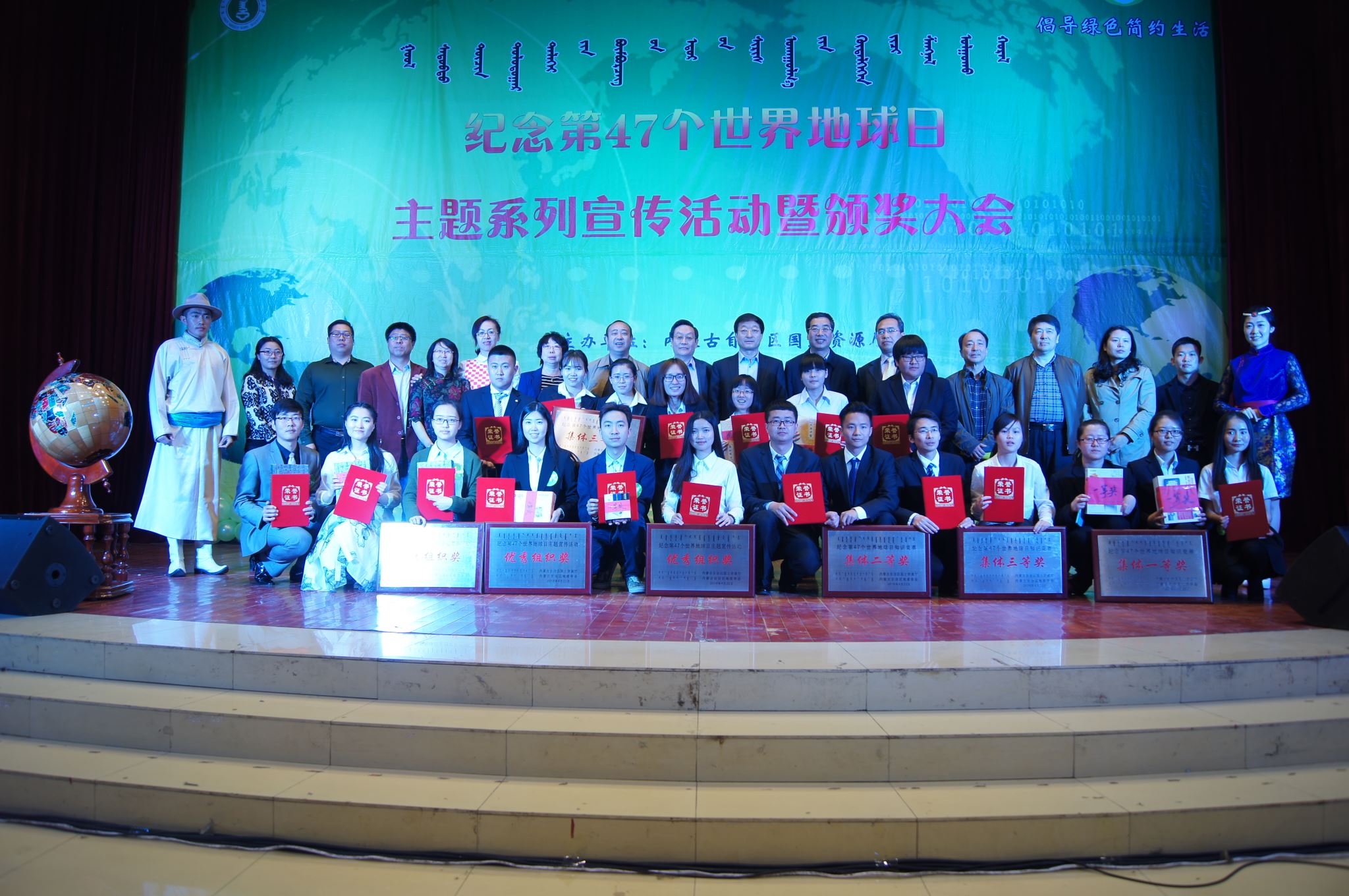 4月22日上午, “纪念第47个世界地球日主题系列宣传活动暨颁奖大会”在bat365在线平台官网盛乐校区举行。内蒙古自治区国土资源厅副巡视员温建华、bat365在线平台官网副校长刘九万、内蒙古地质调查院副院长曹志忠、内蒙古地质调查院党委副书记徐宗培、学生处处长斯钦、学生处副处长石连柱、bat365在线平台官网院长海春兴、bat365在线平台官网副院长张裕凤、bat365在线平台官网党总支副书记李雨薇、内蒙古大学生命科学学院党总支书记张慧荣、内蒙古大学环境与资源学院党总支书记李笑春、内蒙古工业大学研究生工作部学生管理办公室主任唐正魁、内蒙古财经大学资源与环境经济学院党总支书记郑之新等领导和嘉宾莅临本校参加活动。本次活动以内蒙古自治区国土资源厅副巡视员温建华同志致开幕词为始正式拉开帷幕,接着bat365在线平台官网学生代表孙宇雯宣读了本次活动的倡议书,倡导广大同学积极了解生态文明,学习国土资源科学知识,节约集约利用资源,倡导绿色简约生活。整场演讲比赛在来自四个高校八位学生代表的精彩演讲中达到高潮,演讲结束后刘新生同志为本次演讲比赛做了精彩点评,随后进行颁奖环节,bat365在线平台官网荣获“地理百科知识竞赛”的冠军,荣获第二名的是内蒙古工业大学,第三名分别由内蒙古财经大学与内蒙古大学摘得,在演讲比赛中bat365在线平台官网赵延同学获得第一名。随着颁奖环节的结束整场活动正式结束,第47个世界地球日主题系列活动完美落幕。在演讲比赛开始前在图书馆二楼,通过悬挂宣传横幅、展示专题展板、组织签名、发放宣传资料和环保袋等多种方式对第47个地球日进行了积极的宣传。