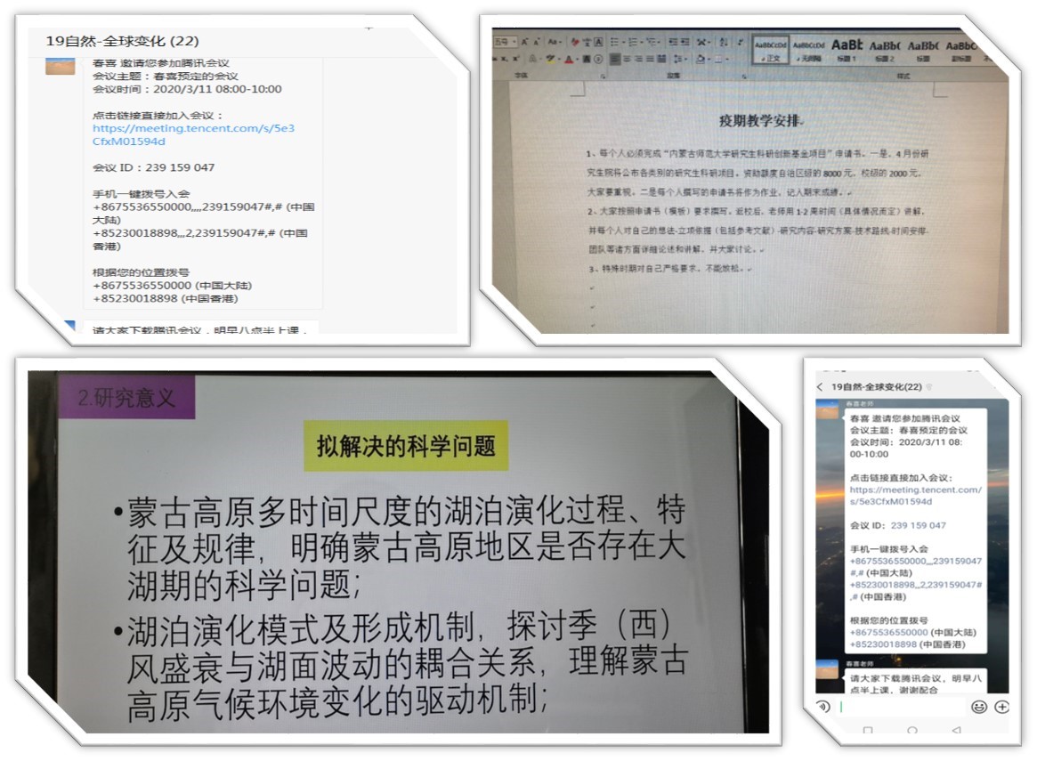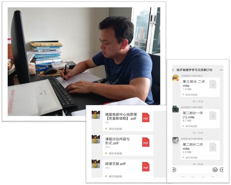 学院积极探索线上教学方式,指导教师灵活开展线上教学,往日的教学课堂从教室搬到了同学们的电脑屏幕,担任“主播”的老师们尽心准备,上“网课”的同学们用心学习。这种新颖的体验让师生们收获颇丰。为了充分调动同学们参与课堂的积极性、充分发挥网络教学的灵活性,老师们采用“微信群+超星学习通+腾讯会议+爱课程”等多种方式相结合的形式,通过平台向学生发放教学大纲、教学课件及参考文献、并安排固定时间在群内进行随机点名、线上答疑、共同研习交流。截至目前,学院共开设16门研究生线上教学课程,任课老师分别组建了线上教学指导微信群。学院实行“每日汇报-每周总结”模式,及时了解教学动向,不断提高与完善bat365官网线上教学质量。